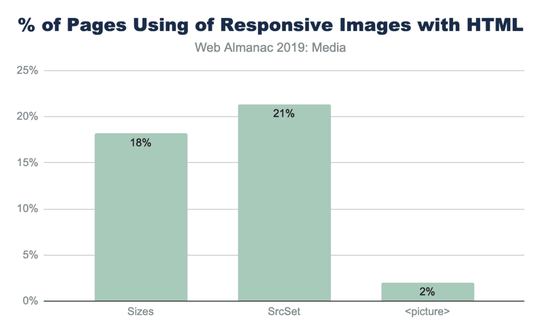The notably lower use of <picture> is not surprising given that it is used most often for advanced responsive web design (RWD) layouts like art direction.