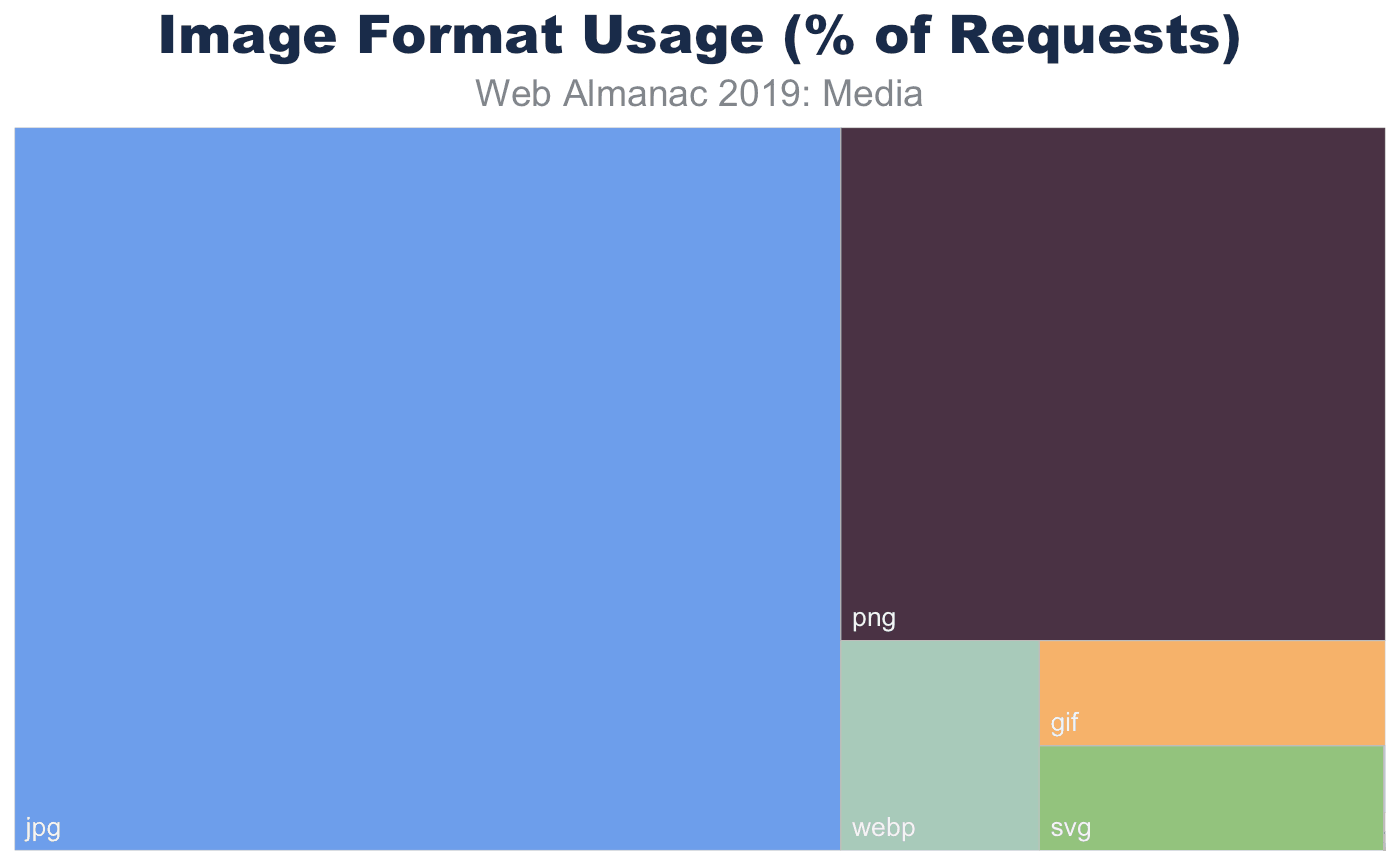 It is rare to find a web page that does not utilize images. Over the years, many different file formats have emerged to help present content on the web, each addressing a different problem. Predominantly, there are 4 main universal image formats: JPEG, PNG, GIF, and SVG. In addition, Chrome has enhanced the media pipeline and added support for a fifth image format: WebP. Other browsers have likewise added support for JPEG2000 (Safari), JPEG-XL (IE and Edge) and HEIC (WebView only in Safari).