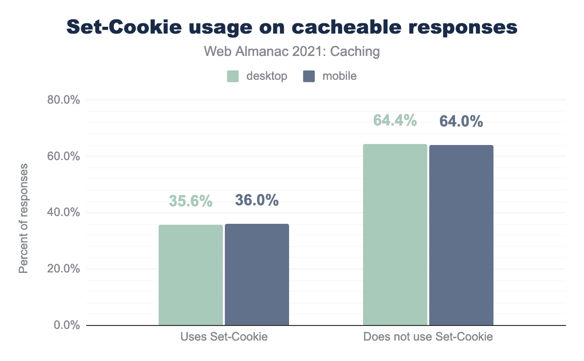 In the 2020 Caching chapter, we were reminded to be aware of using set-cookie with cacheable responses because only 4.9% of responses used the private directive, putting a user’s private data at risk of being accidentally served to a different user via a CDN.