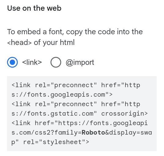 Google Fonts instructions to preconnect to fonts.gstatic.com and fonts.googleapis.com. (Source: Google Fonts)