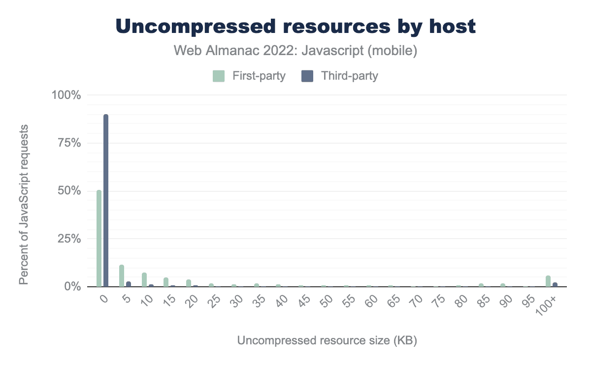 The manner in which JavaScript is requested may also have performance implications. There are optimal ways you can request JavaScript, and in some cases, there are far less optimal methods. Here, we’ll see how the web is shipping JavaScript overall, and how that aligns with performance expectations.
