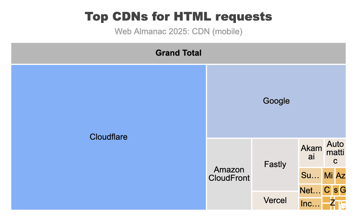 Figure 14.4. Top CDNs for HTML requests on mobile.